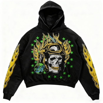 Venta al por mayor de algodón pesado de los hombres con capucha 3D bordado Puff impresión de alta caída del hombro Sudadera con capucha estilo de la calle pulóver