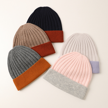 Gorro de mezcla de Cachemira y lana personalizado, gorro de invierno, gorro de punto de rayas verticales de lujo común sólido, moda para mujeres y hombres